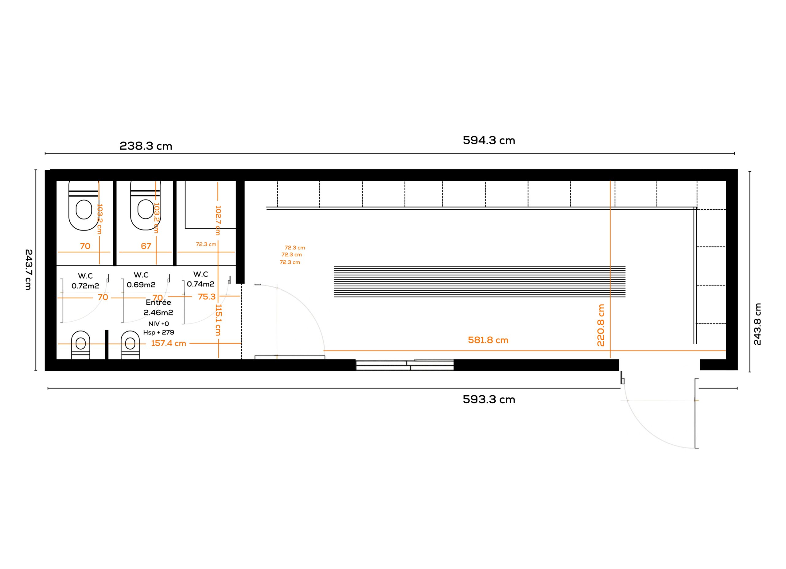 – Usage : vestiaire avec douche et WC intégréRéférence : VEST04
